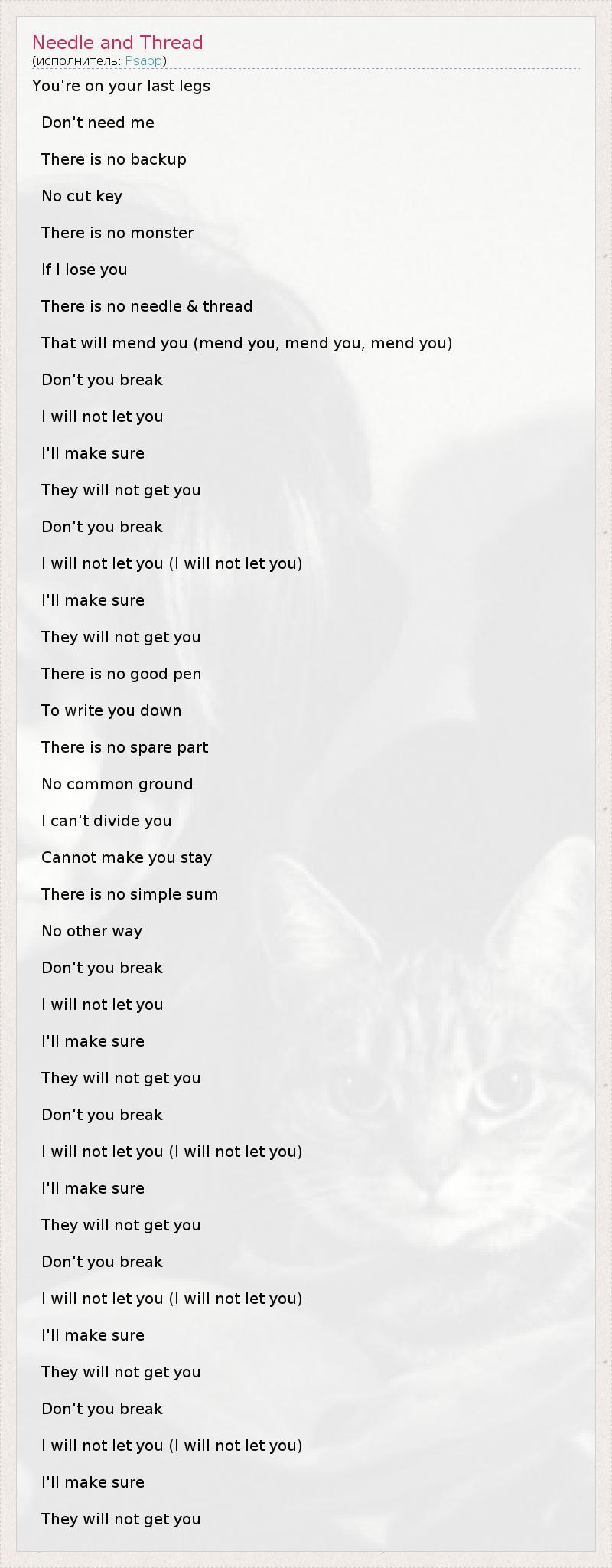А как ты думаешь, о чем песня "Needle and Thread" ?