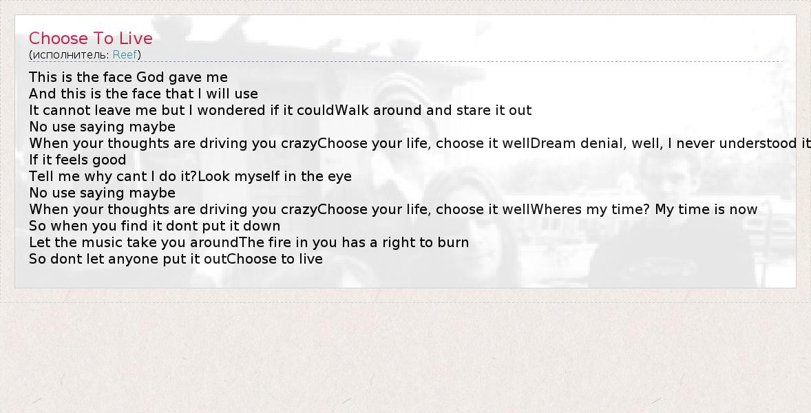 А как ты думаешь, о чем песня "Choose To Live" ?