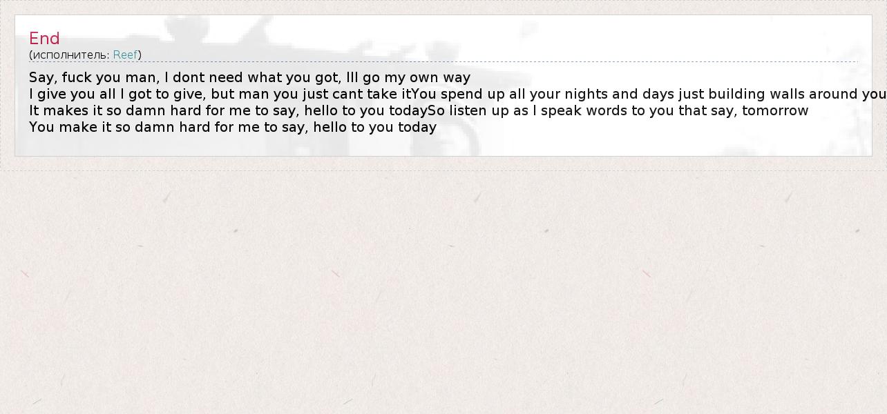Это интересно:Четверо музыкантов, основавших эту команду, выросли в окрестностях Гластонбери. Гэри Стрингер и Джек Бессант были соседями и вместе начинали музицировать в одной фанк-хардкор-кавер-банде. К 1992 году они вместе с Кенвином Хаусом и Домиником Гринсмитом перебрались в Лондон, где играли всякие вещи Джими Хендрикса, "Massive attack", "Jane's addiction". Постепенно "REEF" перешли на современную... продолжение