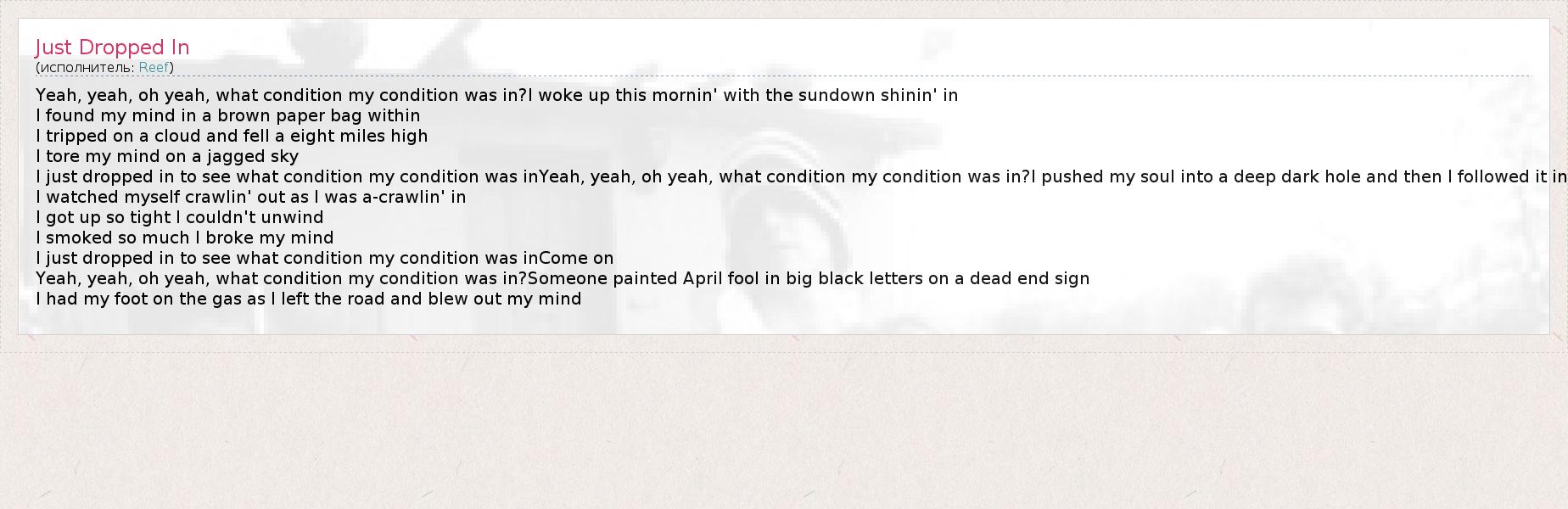 А как ты думаешь, о чем песня "Just Dropped In" ?