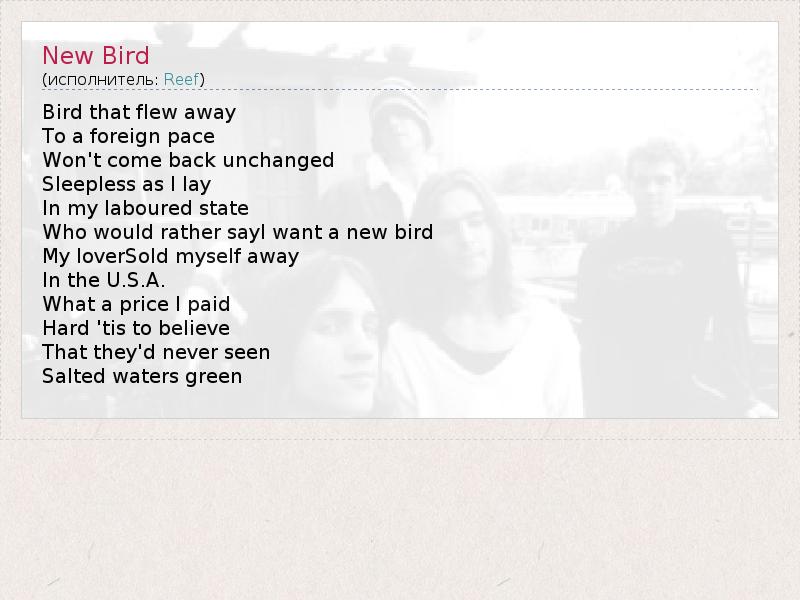 А как ты думаешь, о чем песня "New Bird" ?