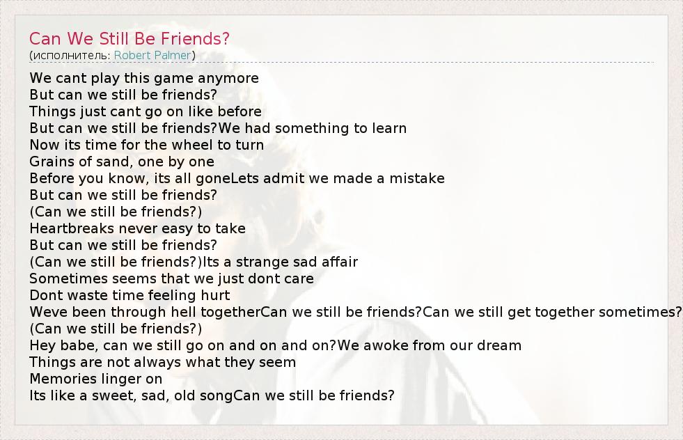 Its like a sweet, sad, old songCan we still be friends?