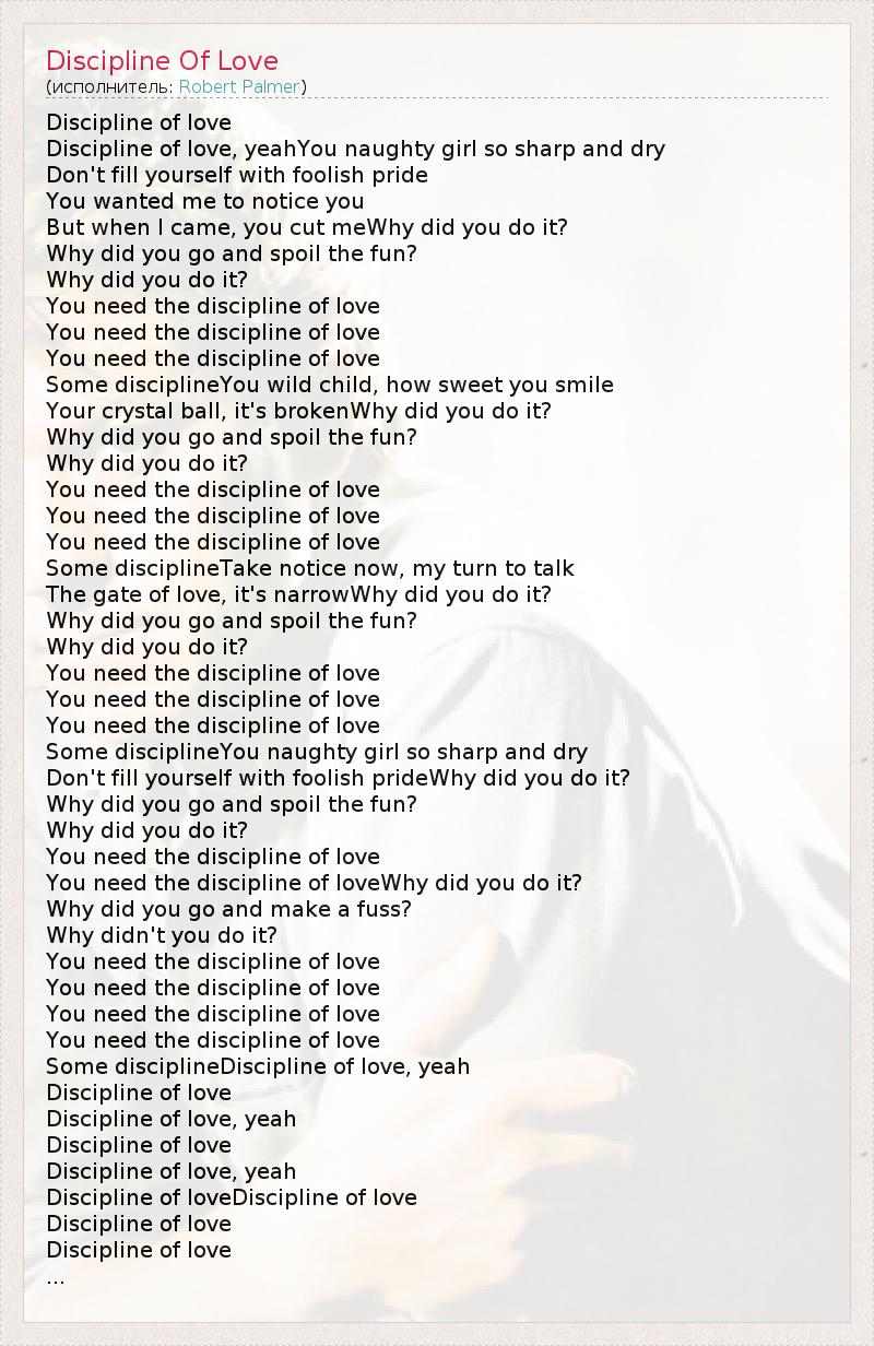 А как ты думаешь, о чем песня "Discipline Of Love" ?