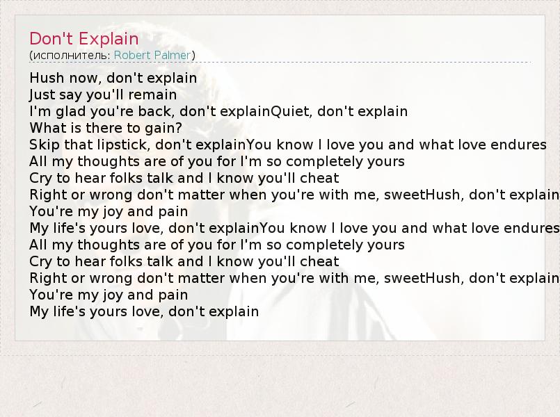 А как ты думаешь, о чем песня "Don't Explain" ?