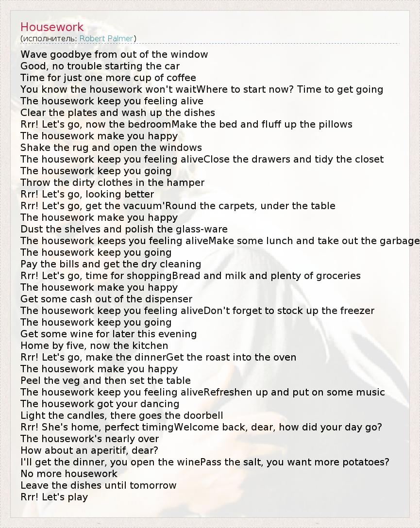 The housework keep you feeling aliveClose the drawers and tidy the closet