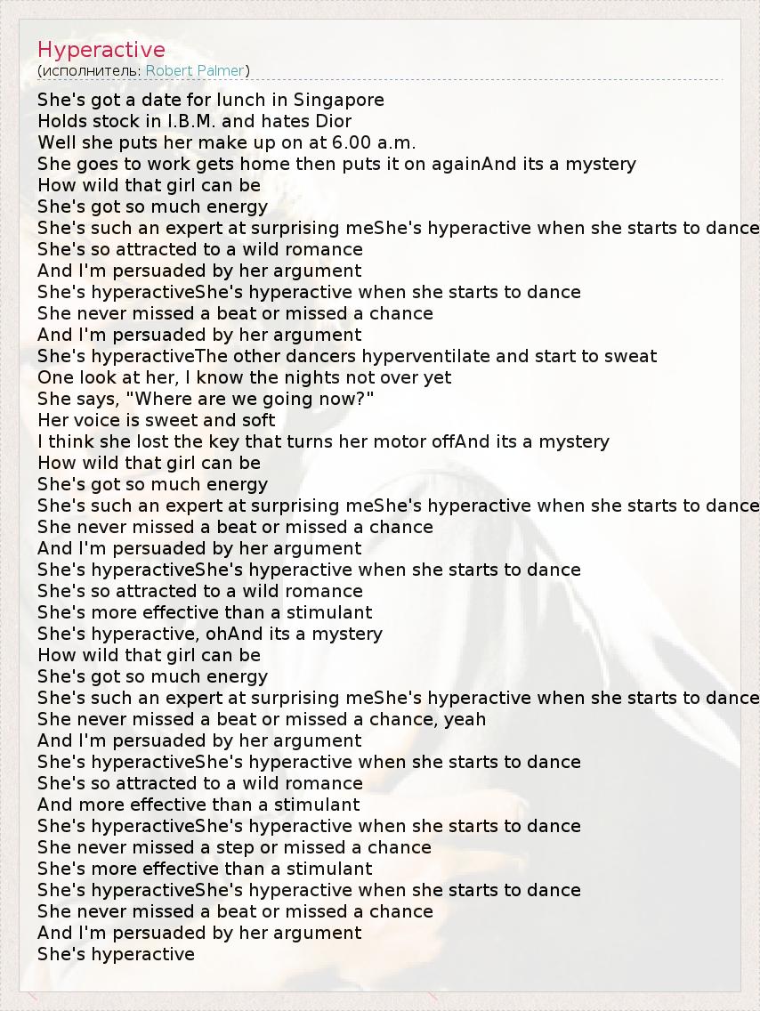 А как ты думаешь, о чем песня "Hyperactive" ?