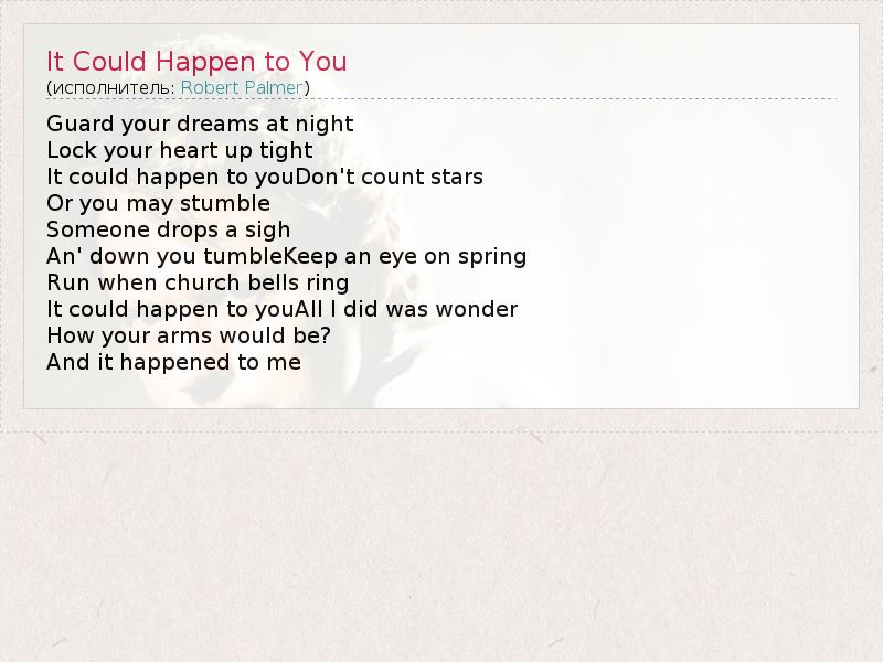 А как ты думаешь, о чем песня "It Could Happen to You" ?