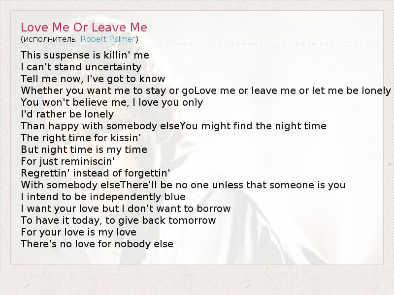 А как ты думаешь, о чем песня "Love Me Or Leave Me" ?