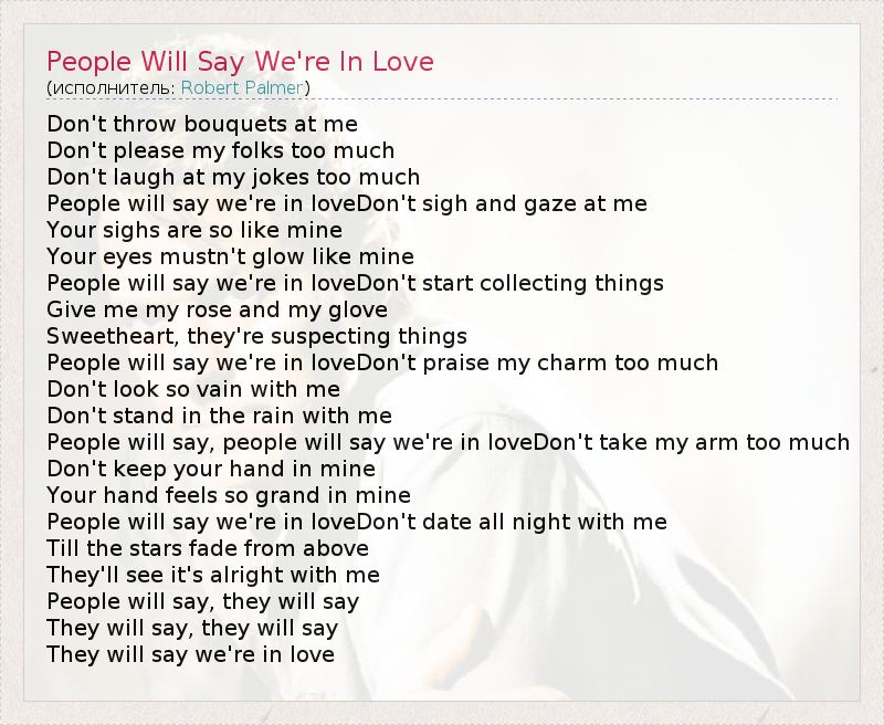 А как ты думаешь, о чем песня "People Will Say We're In Love" ?