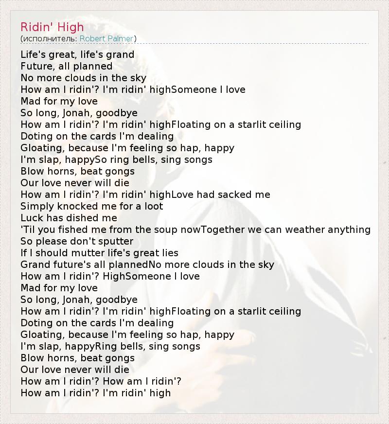 А как ты думаешь, о чем песня "Ridin' High" ?