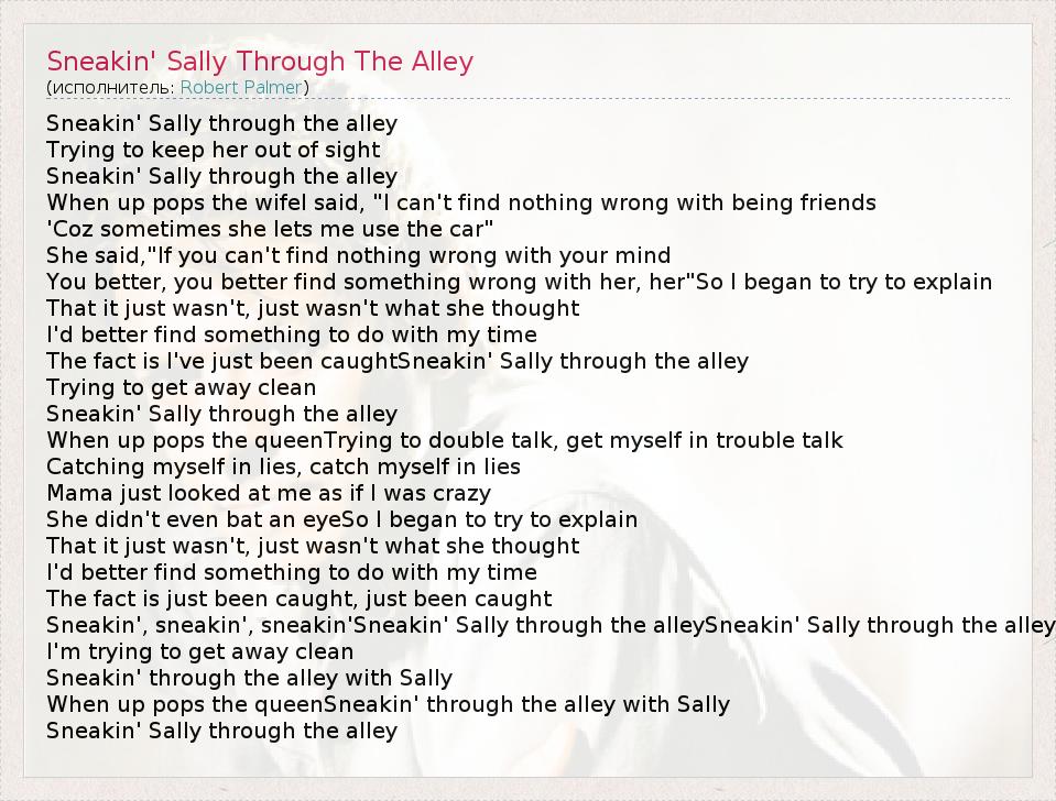 А как ты думаешь, о чем песня "Sneakin' Sally Through The Alley" ?