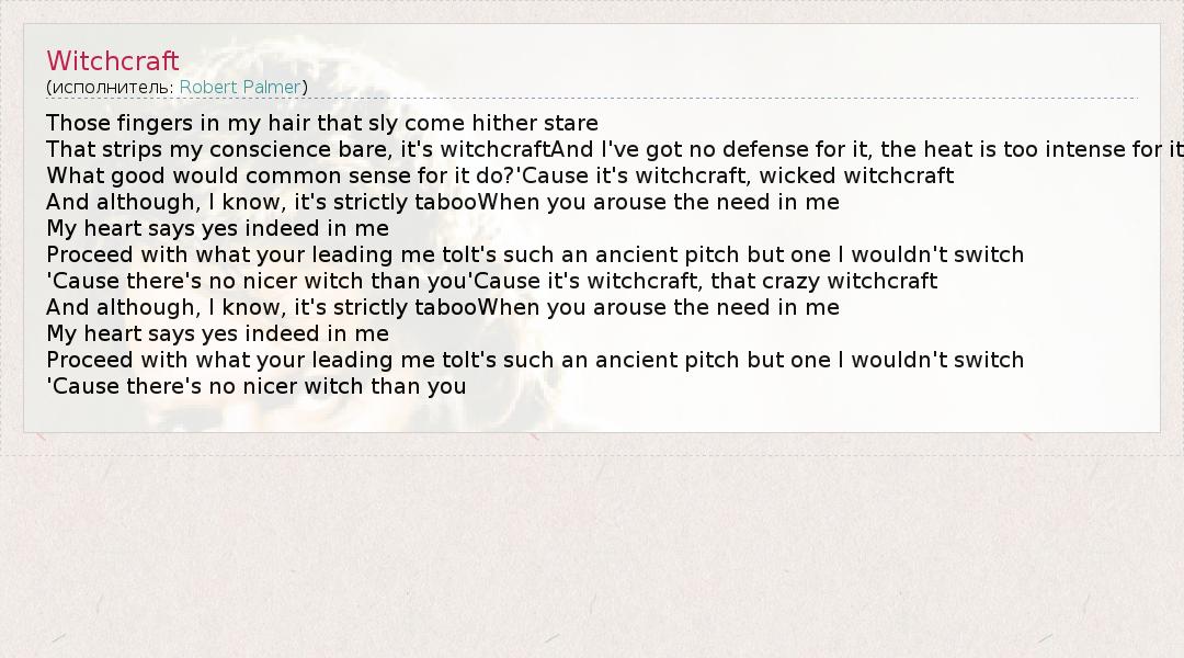 А как ты думаешь, о чем песня "Witchcraft" ?
