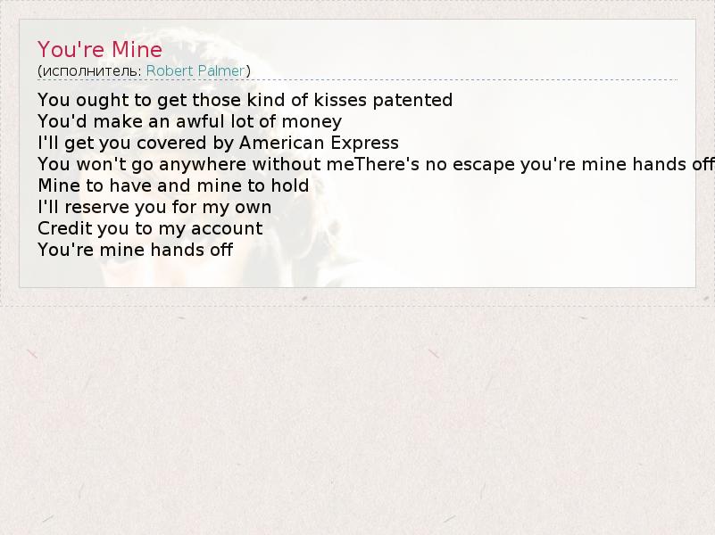 А как ты думаешь, о чем песня "You're Mine" ?