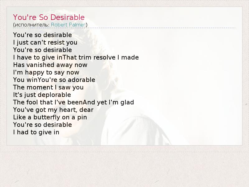 А как ты думаешь, о чем песня "You're So Desirable" ?
