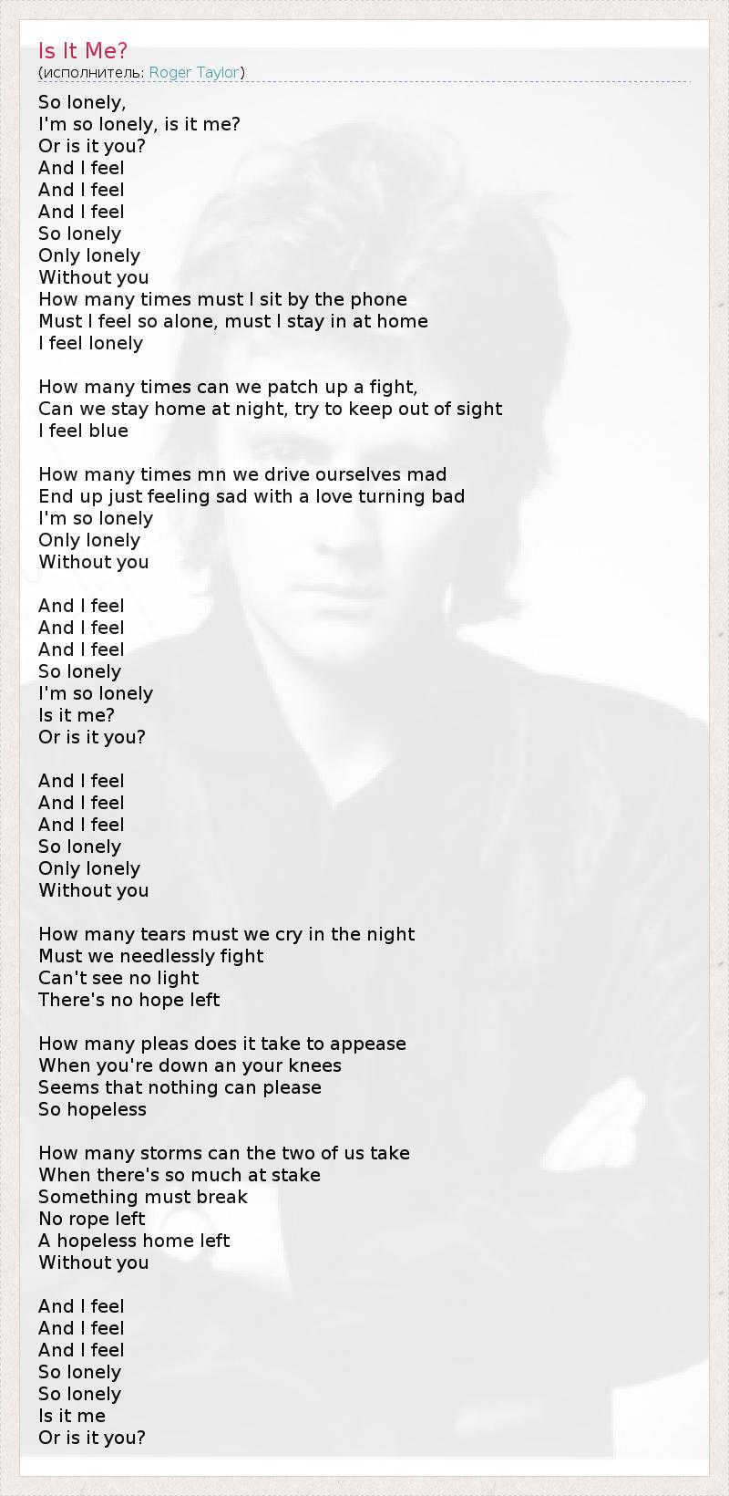 А как ты думаешь, о чем песня "Is It Me?" ?