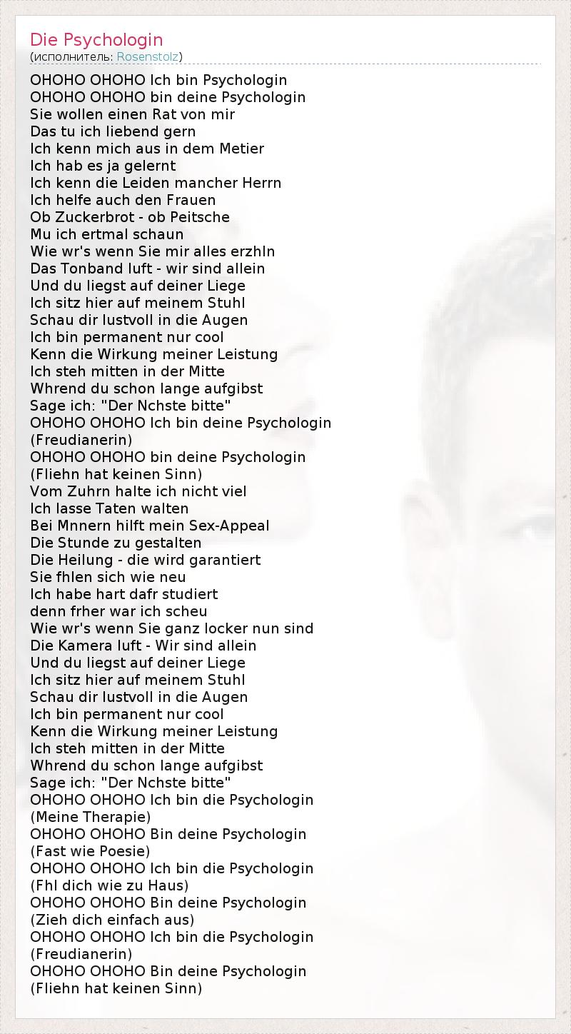 А как ты думаешь, о чем песня "Die Psychologin" ?