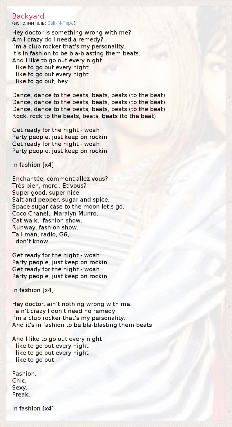 Это интересно:Напомню сразу, что SALT’N’PEPA — это женское трио из Америки.Cheryl ‘Salt’ James родом из нью–йоркского района Бруклин. Sandy‘Pepa’ Denton (р. 9.10.1969 г.) родилась на Ямайке, но росла также в Нью–Йорке (район Куинс). Обе семьи были многодетными.Дамочки познакомились в колледже, затем окончания которого могли начинать воспитателями в детском саду. Обе стали подрабатывать в супермаркете под названием... продолжение