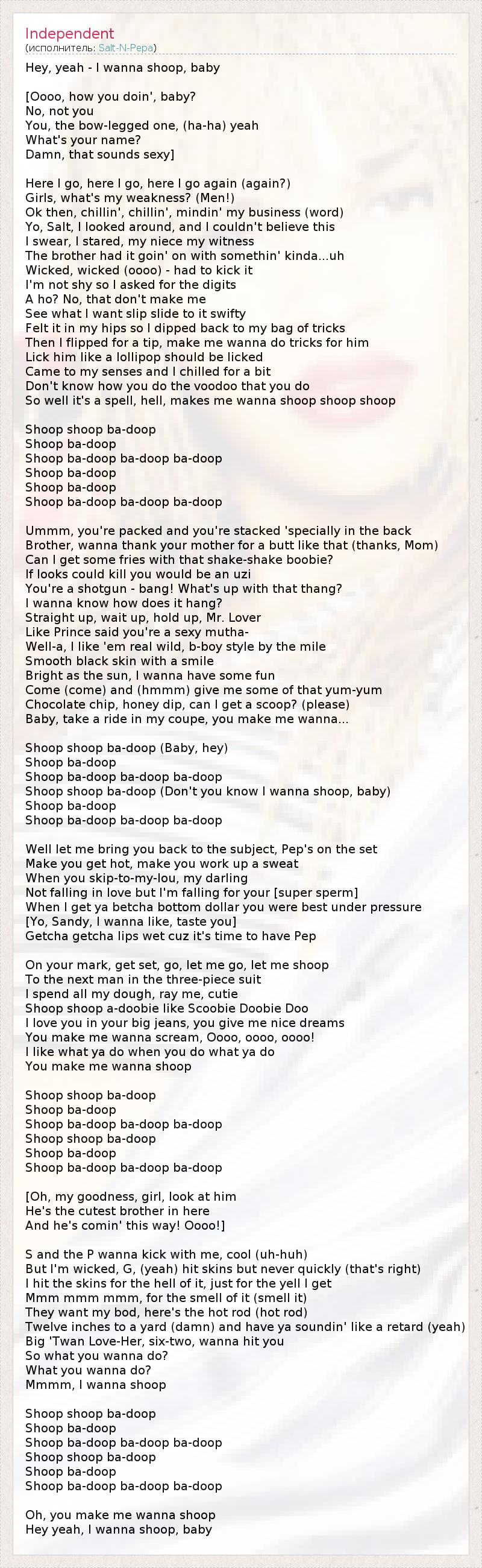 Shoop Shoop ба- DOOP ( Разве ты не знаешь, что я хочу SHOOP , ребенок )
