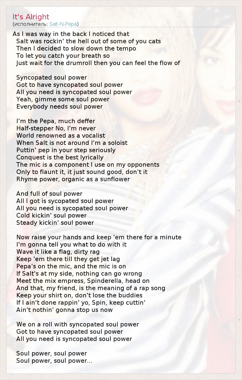 Это интересно:Напомню сразу, что SALT’N’PEPA — это женское трио из Америки.Cheryl ‘Salt’ James родом из нью–йоркского района Бруклин. Sandy‘Pepa’ Denton (р. 9.10.1969 г.) родилась на Ямайке, но росла также в Нью–Йорке (район Куинс). Обе семьи были многодетными.Дамочки познакомились в колледже, затем окончания которого могли начинать воспитателями в детском саду. Обе стали подрабатывать в супермаркете под названием... продолжение