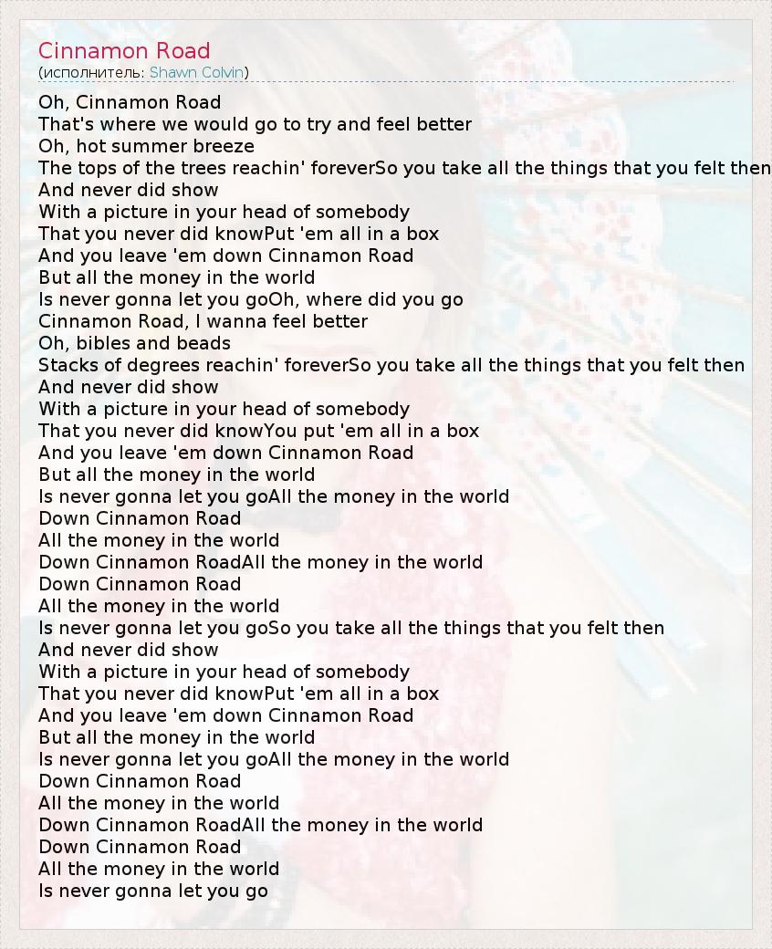 А как ты думаешь, о чем песня "Cinnamon Road" ?