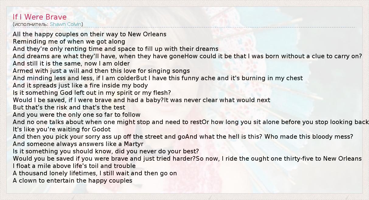 А как ты думаешь, о чем песня "If I Were Brave" ?
