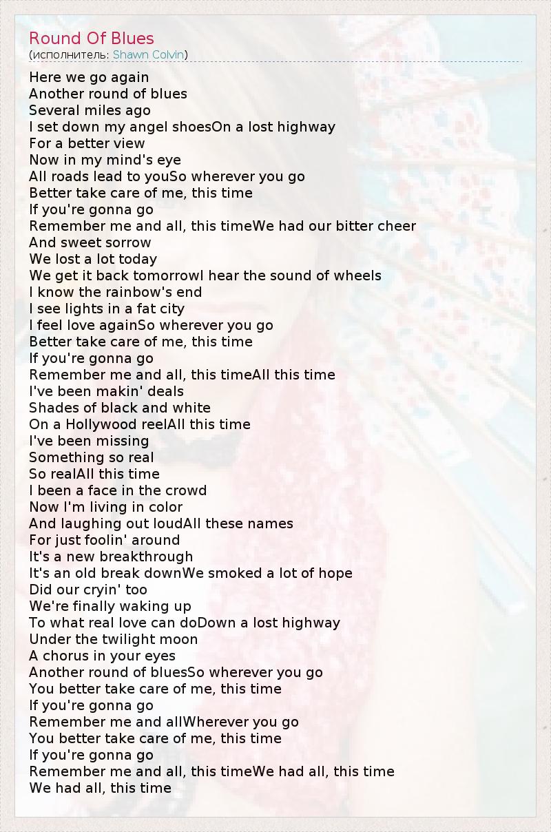 А как ты думаешь, о чем песня "Round Of Blues" ?