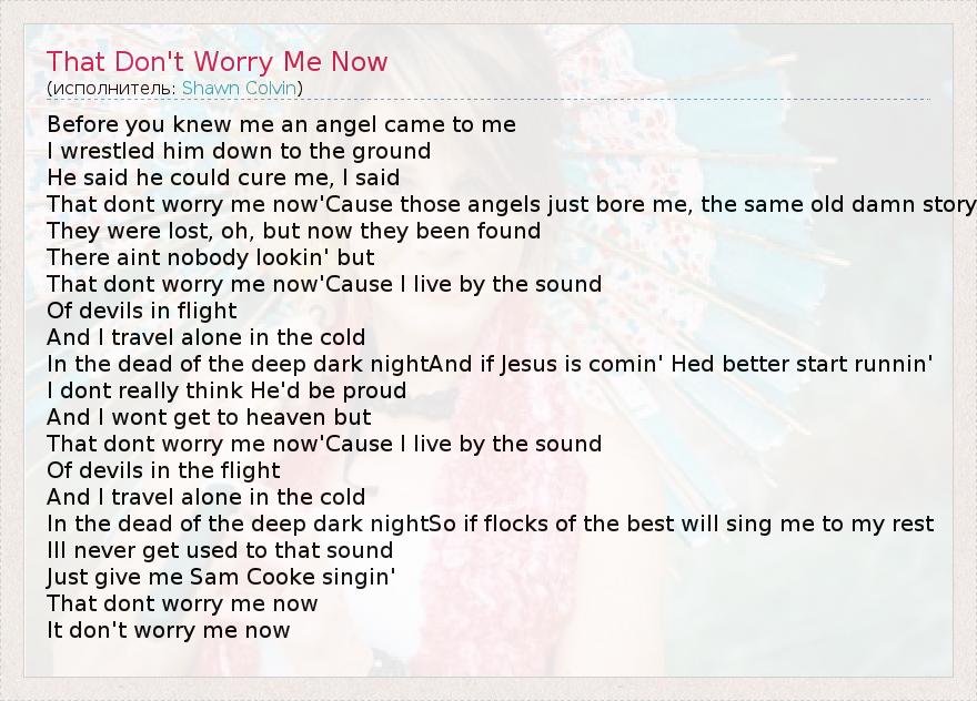 ГлавнаяИсполнителиShawn ColvinThat Don't Worry Me Now