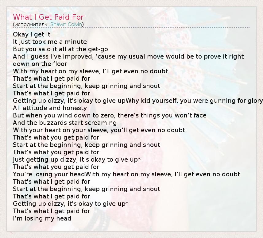 А как ты думаешь, о чем песня "What I Get Paid For" ?