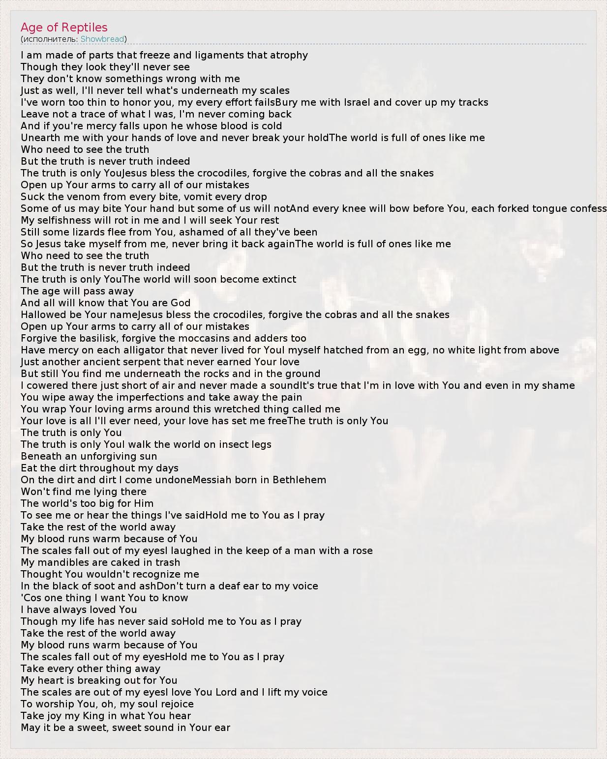 А как ты думаешь, о чем песня "Age of Reptiles" ?