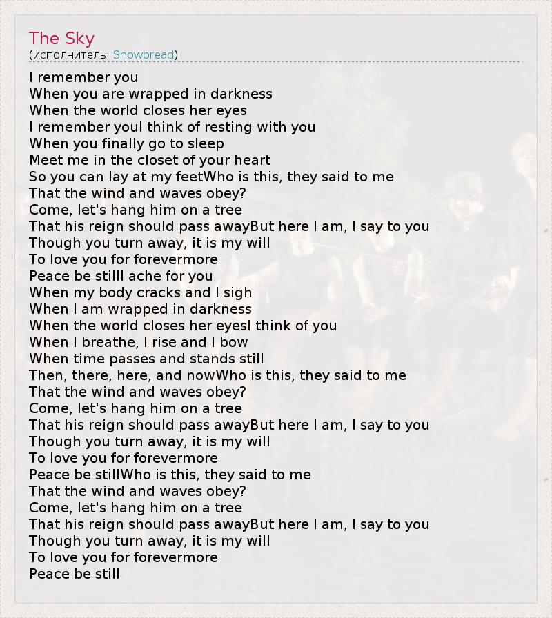 Это интересно:Showbread образовались в одной из церквей Саванны (штат Джордия) в 1998-м как группа церковного прославления, играющая по воскресениям. С детства парни росли на музыке Майкла Дабви Смита, Стива Кертиса Чапмена и Carman’а.Название Showbread символизирует “хлеб”, являющийся плотью Христа и тот хлеб, который евреи хранили в храмах, а также хлеб, который Бог разрешил есть Давиду в субботний день (см.... продолжение