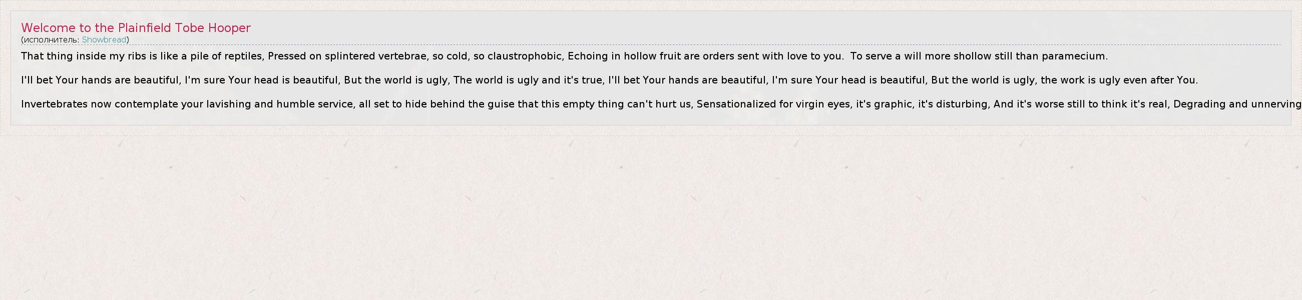 А как ты думаешь, о чем песня "Welcome to the Plainfield Tobe Hooper" ?