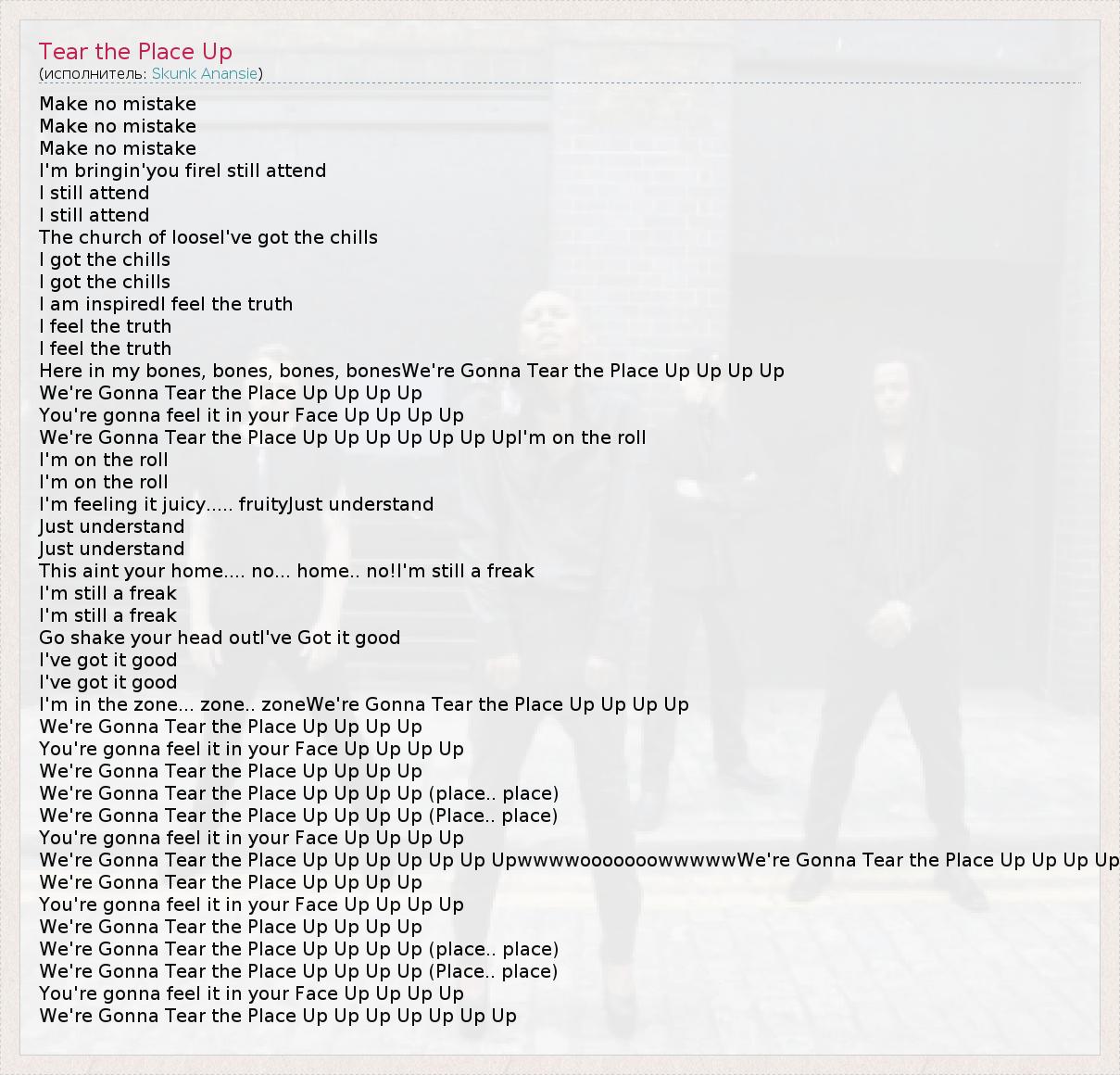 А как ты думаешь, о чем песня "Tear the Place Up" ?