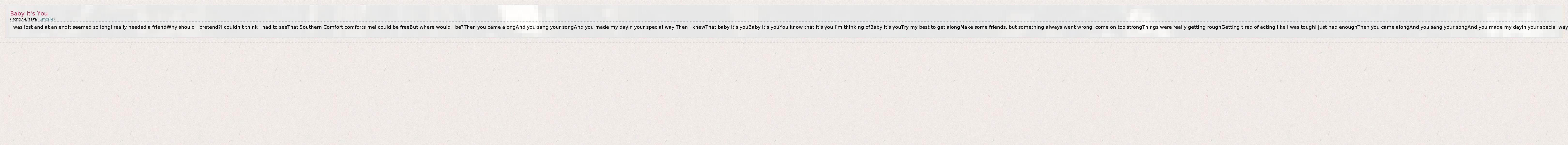 I was lost and at an endIt seemed so longI really needed a friendWhy should I pretend?I couldn't think I had to seeThat Southern Comfort comforts meI could be freeBut where would I be?Then you came alongAnd you sang your songAnd you made my dayIn your special way Then I knewThat baby it's youBaby it's youYou know that it's you I'm thinking ofBaby it's youTry my best to get alongMake some friends, but something always went wrongI come on too strongThings were really getting roughGetting tired of acting like I was toughI just had enoughThen you came alongAnd you sang your songAnd you made my dayIn your special way