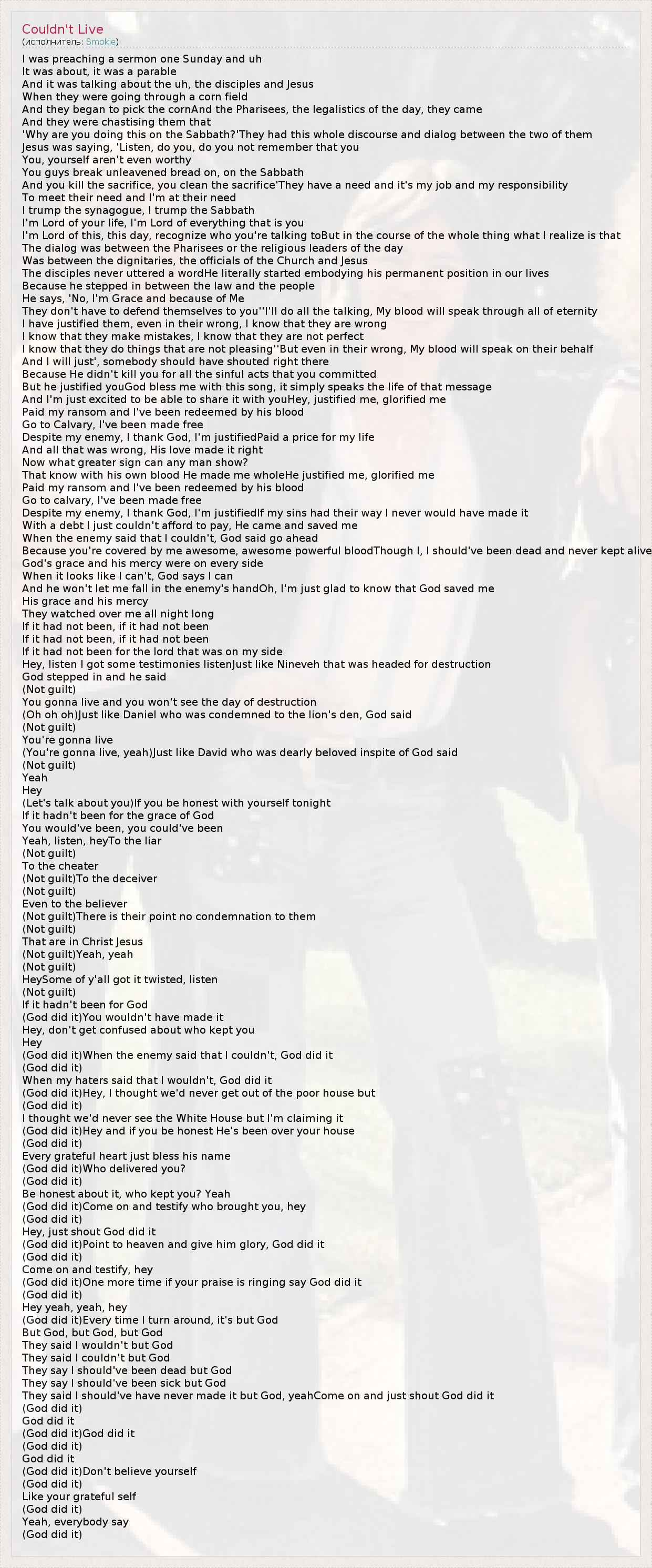 А как ты думаешь, о чем песня "Couldn't Live" ?
