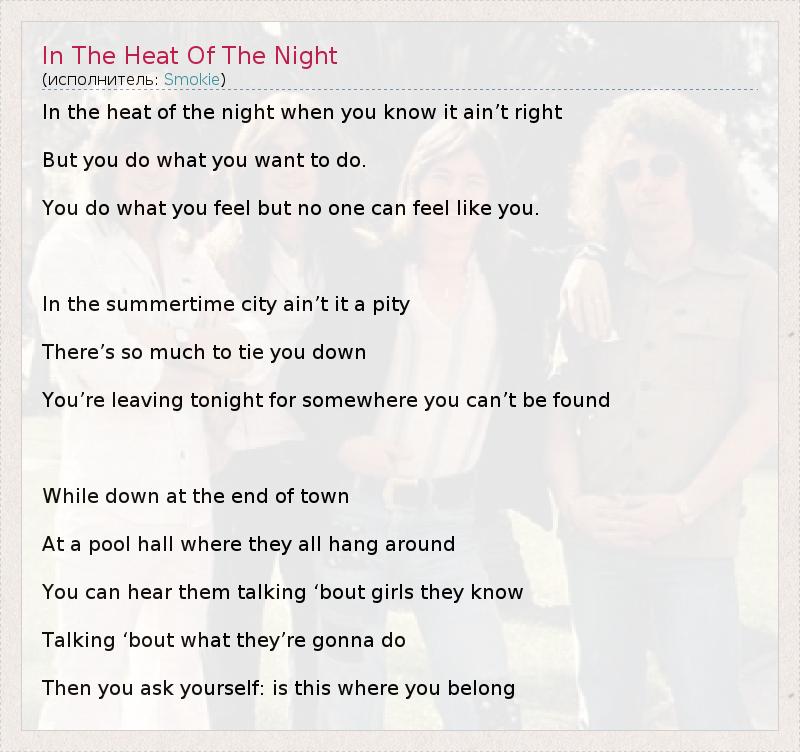 А как ты думаешь, о чем песня "In The Heat Of The Night" ?