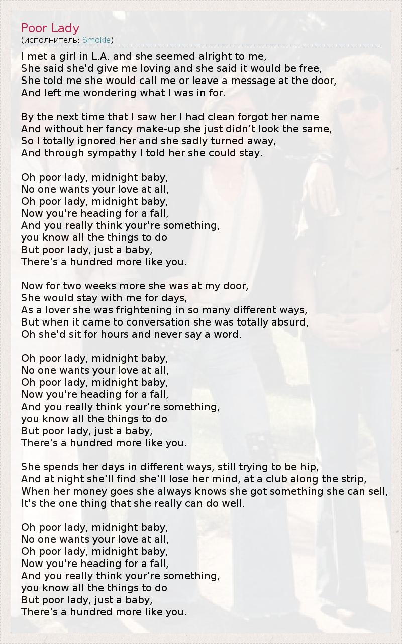 А как ты думаешь, о чем песня "Poor Lady" ?