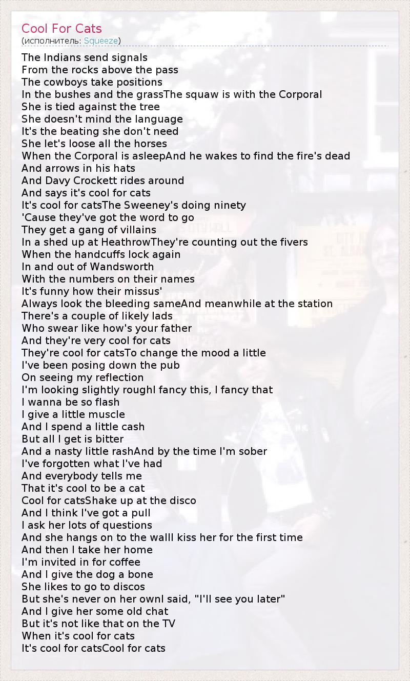 А как ты думаешь, о чем песня "Cool For Cats" ?