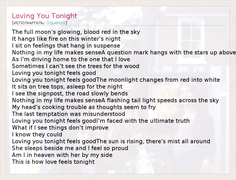 А как ты думаешь, о чем песня "Loving You Tonight" ?
