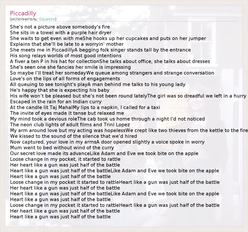 А как ты думаешь, о чем песня "Piccadilly" ?