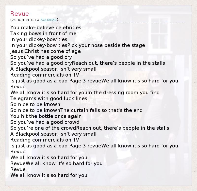 А как ты думаешь, о чем песня "Revue" ?