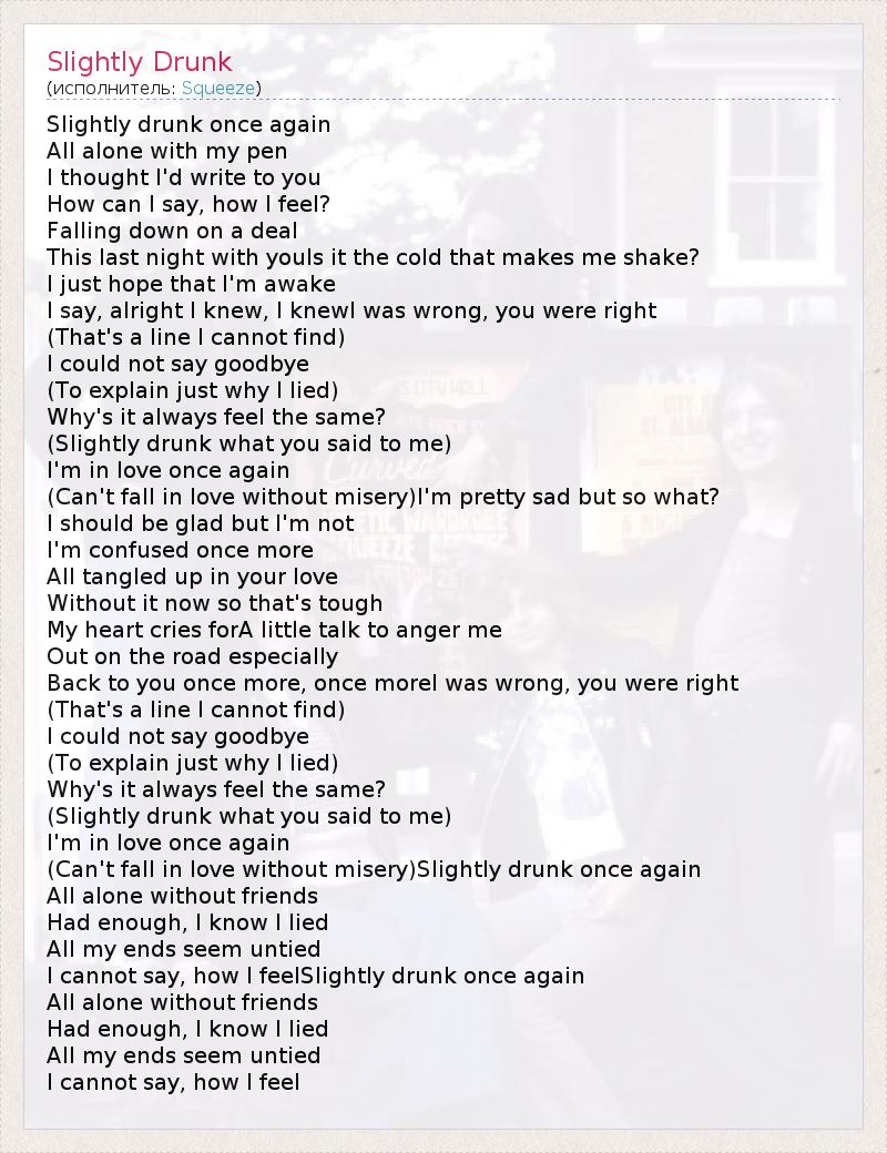А как ты думаешь, о чем песня "Slightly Drunk" ?