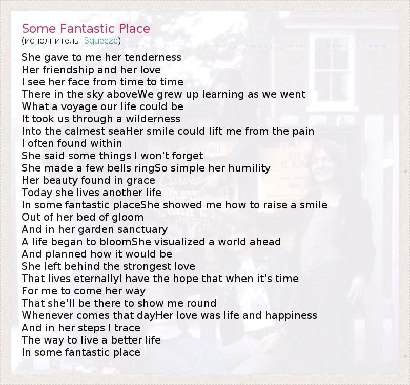 А как ты думаешь, о чем песня "Some Fantastic Place" ?