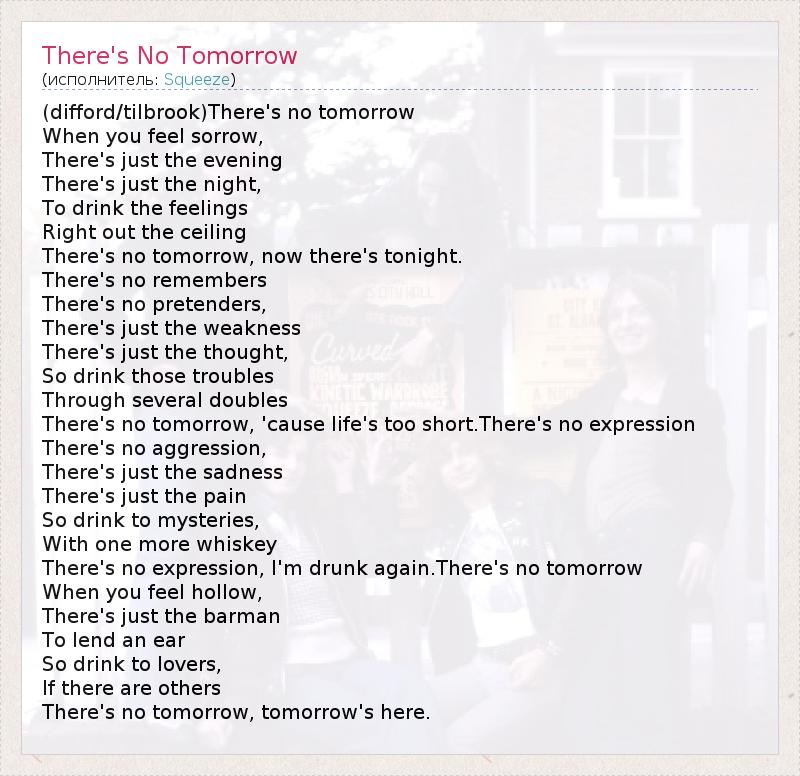 А как ты думаешь, о чем песня "There's No Tomorrow" ?