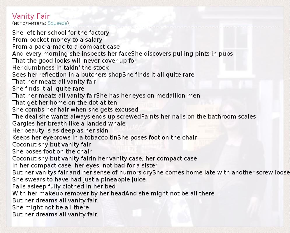 А как ты думаешь, о чем песня "Vanity Fair" ?
