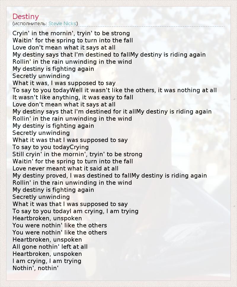Это интересно:Стиви Никс родилась 26 мая 1948 года в Финиксе, штат Аризона, США. Она является одной из талантливейших и известнейших американских исполнительниц, обладательницей большого количества музыкальных премий и наград. Особую популярность получила благодаря работе в рамках группы Fleetwood Mac. Певица исполняет свои композиции в лирическом, но в то же самое время тяжелом стиле, тем самым создавая... продолжение