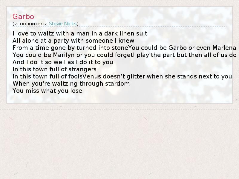 А как ты думаешь, о чем песня "Garbo" ?