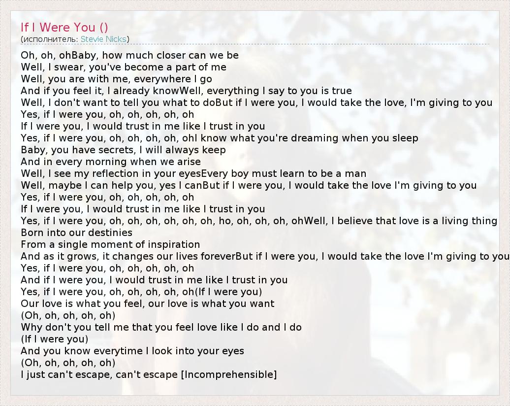 А как ты думаешь, о чем песня "If I Were You ()" ?