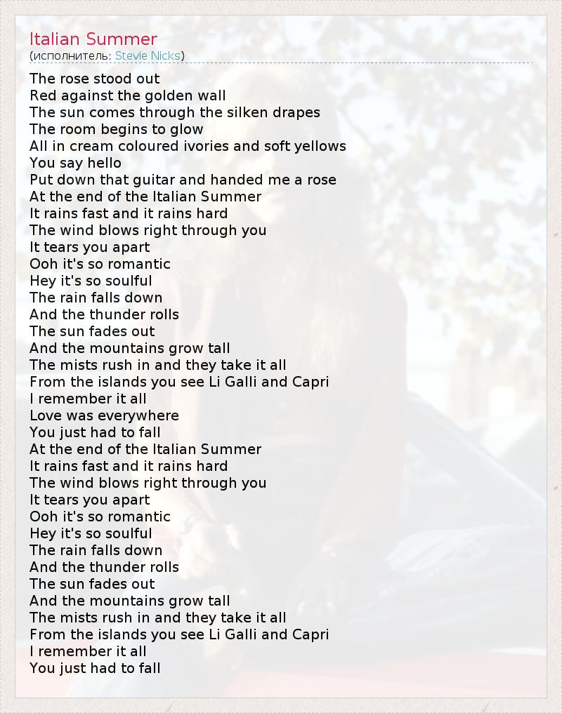 А как ты думаешь, о чем песня "Italian Summer" ?