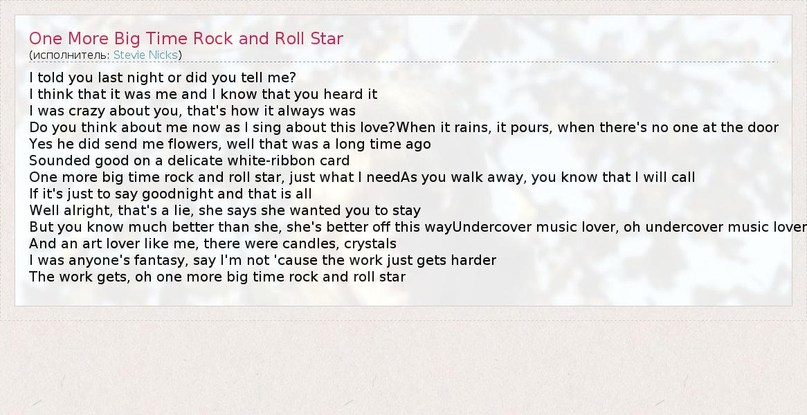 ГлавнаяИсполнителиStevie NicksOne More Big Time Rock and Roll Star