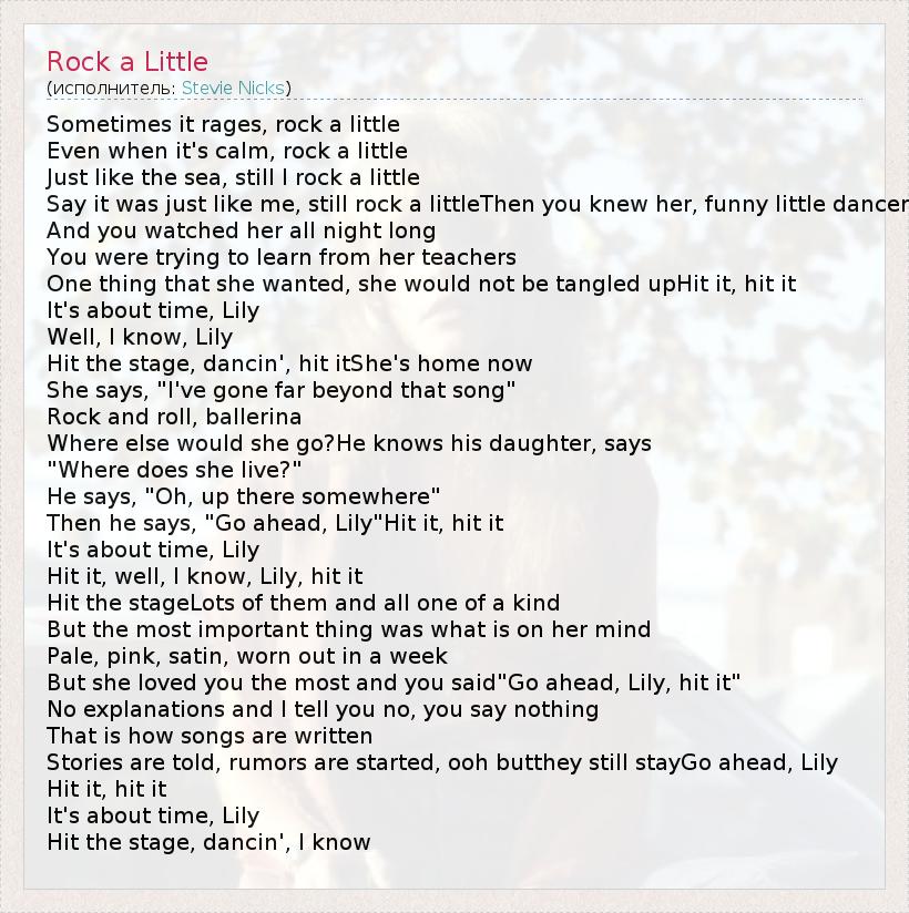 А как ты думаешь, о чем песня "Rock a Little" ?